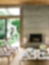 This fireplace has a modern look with clean lines but its materials are rustic with high texture. The rustic textures add personality to the minimal aesthetic. The floating hearth is a unique detail that adds a bit of character to the space.
